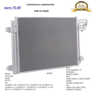 Aggiungi al carrello CONDENSATORE AUDI A3, A3 Sportback, TT SEAT ALTEA, ALTEA XL, LEON, TOLEDO SKODA OCTAVIA, SUPERB, YETI VW CADDY, CADDY ALLTRACK, EOS, GOLF, JETTA, SCIROCCO, TOURAN, TOURAN VAN € 61.48