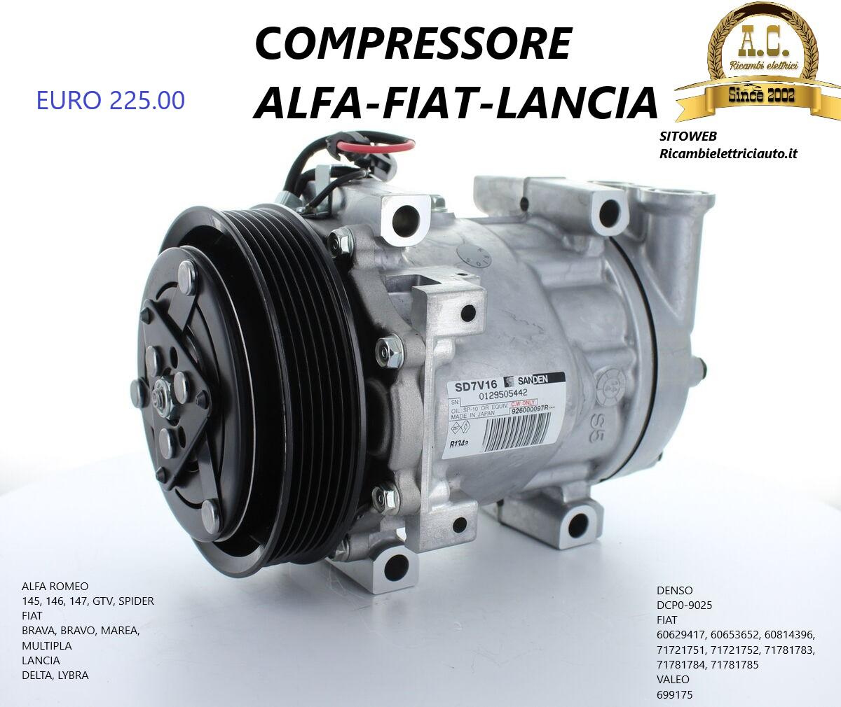 COMPRESSORE CLIMATIZZATORE NON ORIGINALE CON 1 ANNO DI GARANZIA PRODOTTO DI OTTIMA QUALITA’