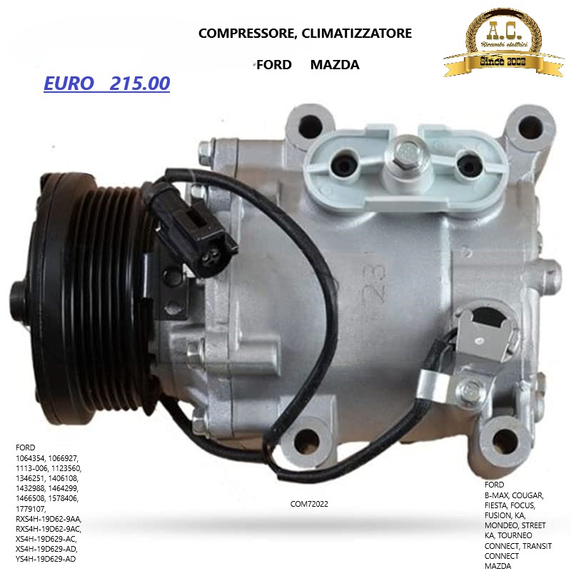 COMPRESSORE CLIMATIZZATORE NON ORIGINALE DI OTTIMA QUALITA’ CON 1 ANNO DI GARANZIA