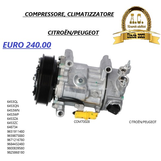 COMPRESSORE CLIMATIZZATORE NUOVO NON ORIGINALE CON GARANZIA DI 1 ANNO,MA DI OTTIMA QUALITA’