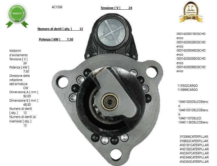 MOTORINO AVVIAMENTO NON ORIGINALE NUOVO CON GARANZIA 1 ANNO