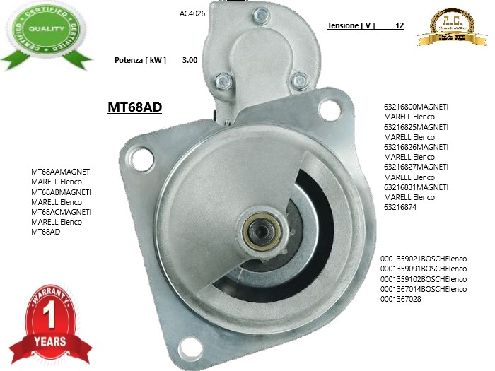 MOTORINO AVVIAMENTO NUOVO NON ORIGINALE 1 ANNO DI GARANZIA