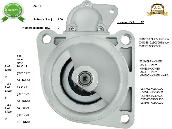 MOTORINO AVVIAMENTO NUOVO NON ORIGINALE CON GARANZIA DI 1 ANNO,PRODOTTO DI BUONA QUALITA’